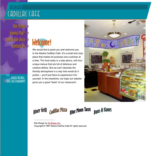 We would like to great you and welcome you to the Alaska Cadillac Cafe. It's a small and cozy place that makes its business on customer at a time.