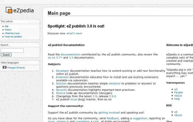 Motivated by the eZ community, Kristof Coomans started to work on an eZ publish wiki short before the summer holidays of 2006. At the beginning of November 2006 the project was restarted by Kristof and Graham Brookins. Heavily inspired by Wikipedia, Kristof proposed to call the project eZpedia, Graham bought the domain, And eZpedia was born!
