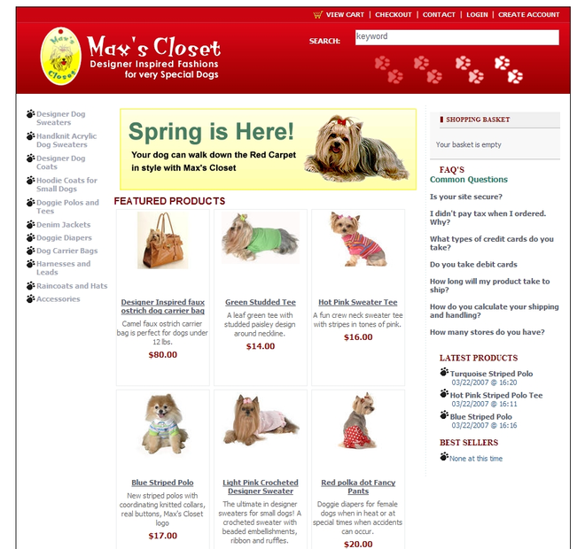 Now Max features a great array of coats, sweaters and accessories designed to express the fun and spirit of themes. We are serious about customer satisfaction and we offer exceptional, hard-to-find products at great prices! Max's Closet knows animal fashion!